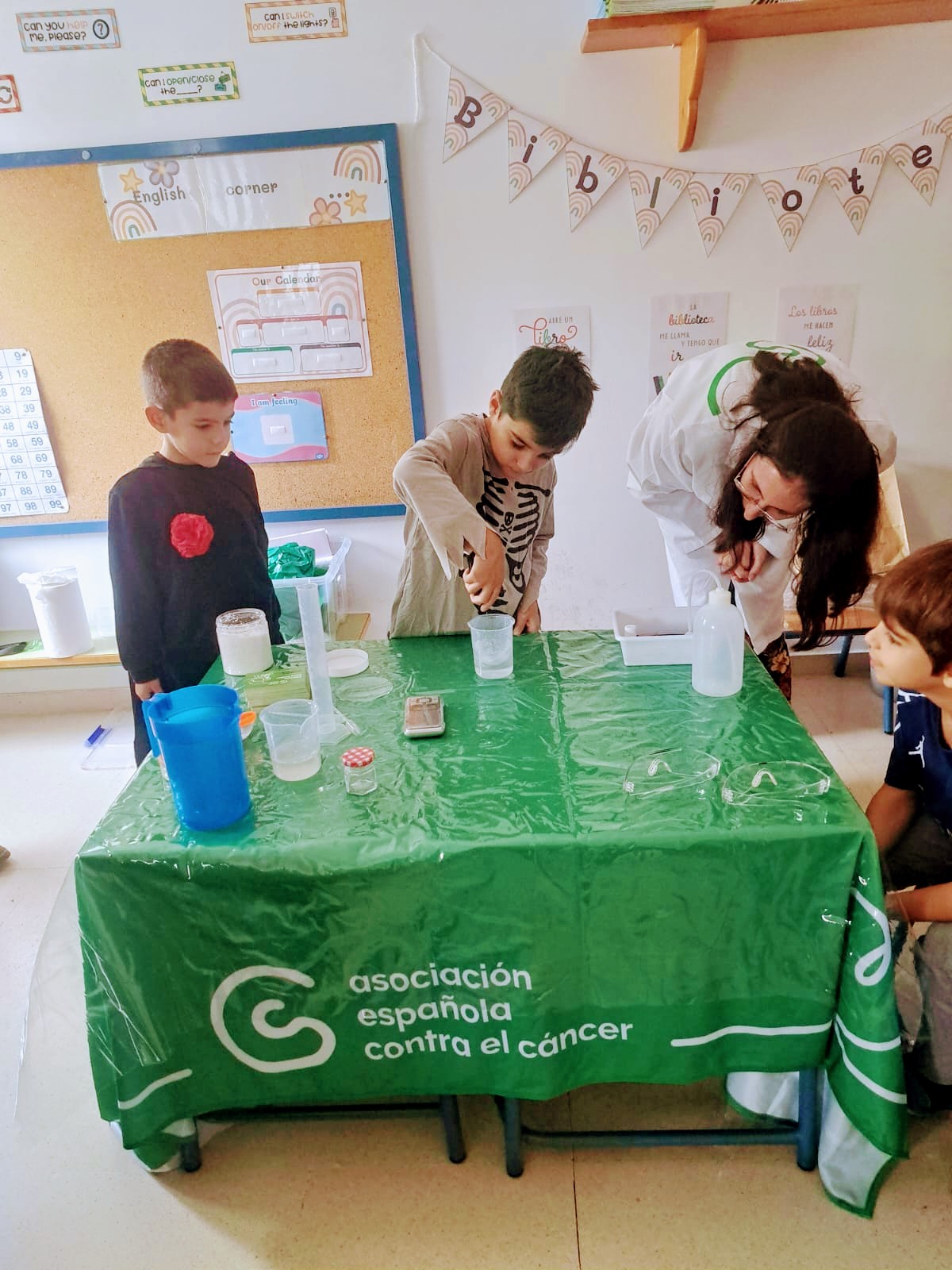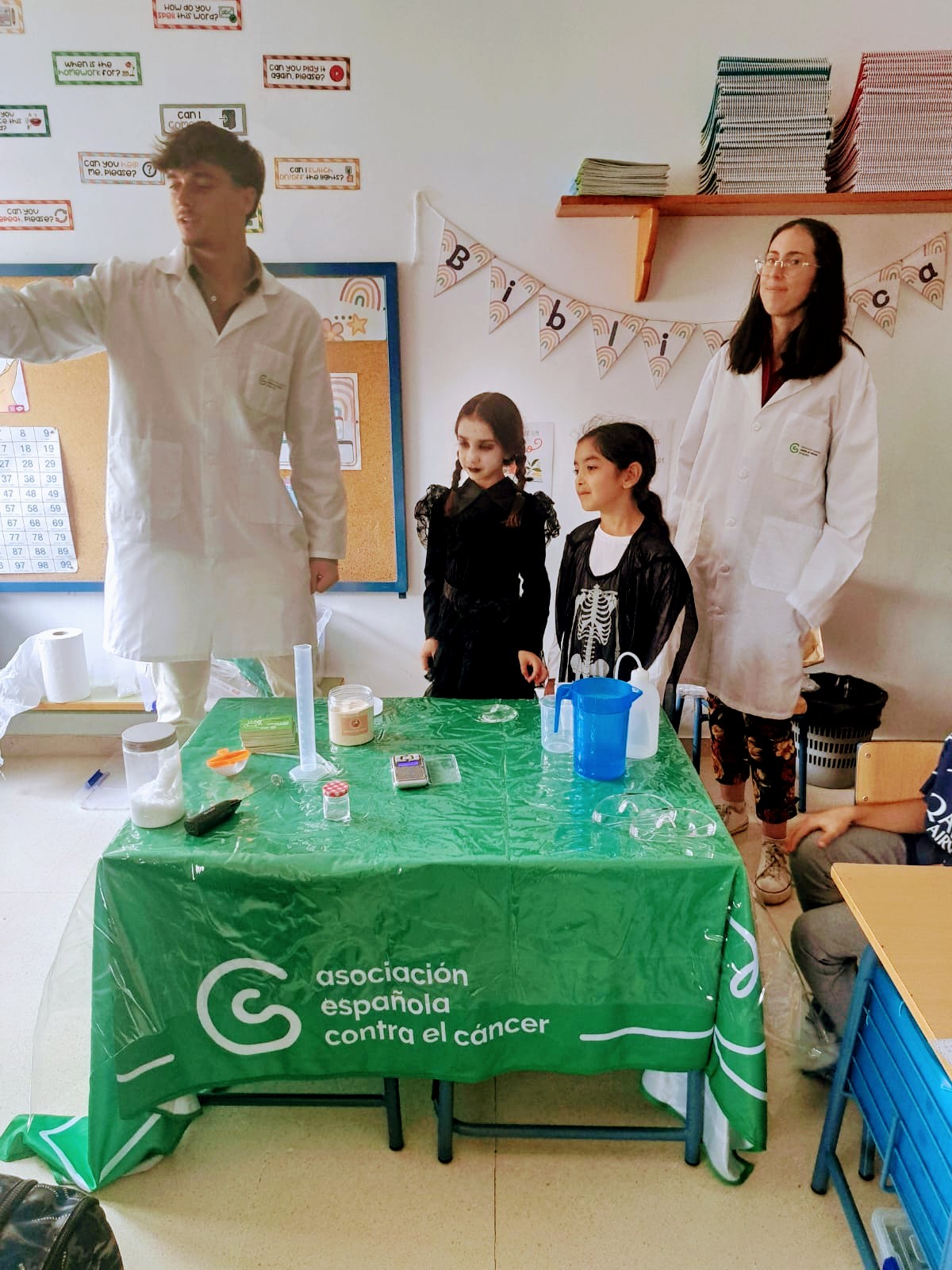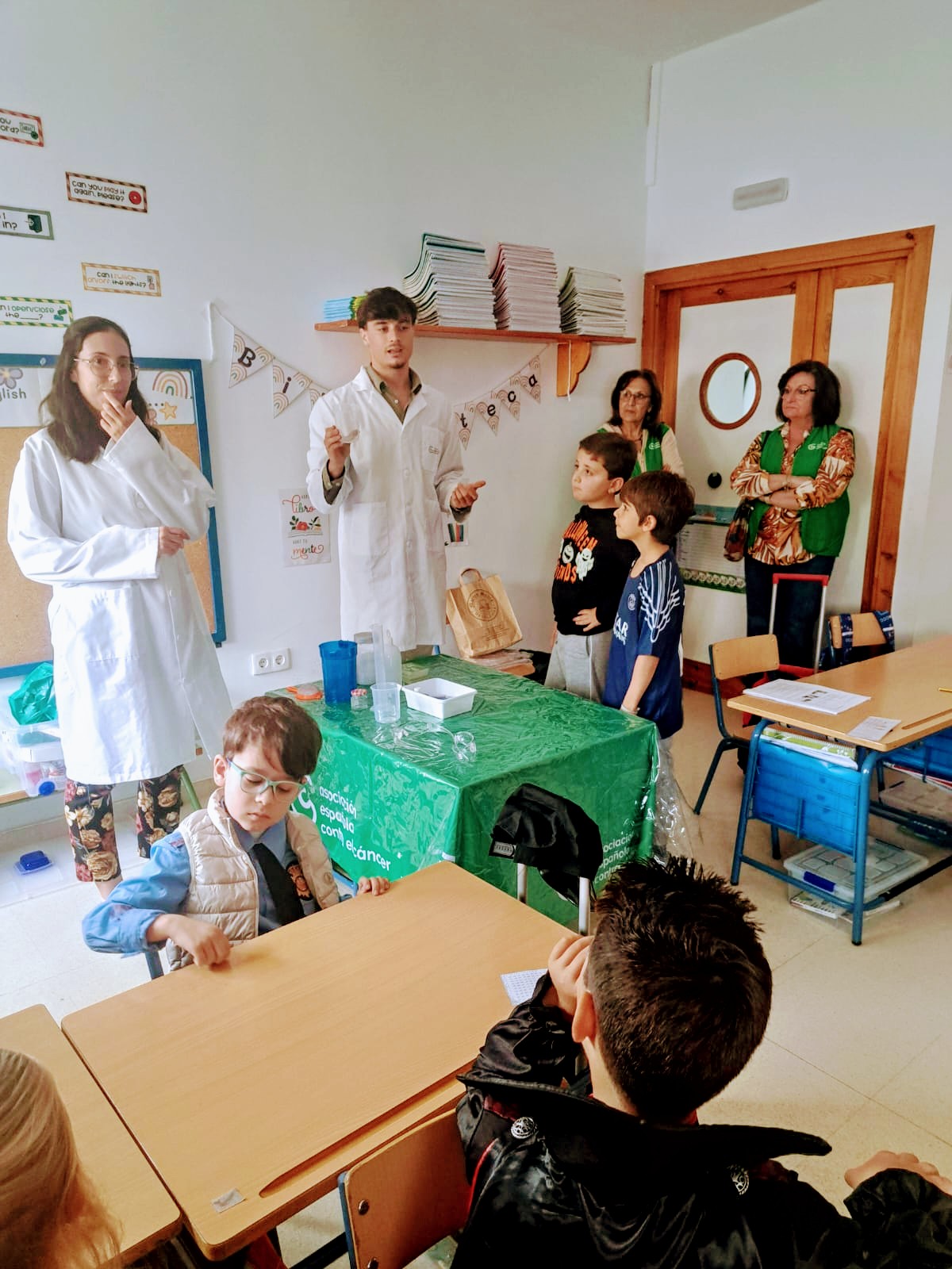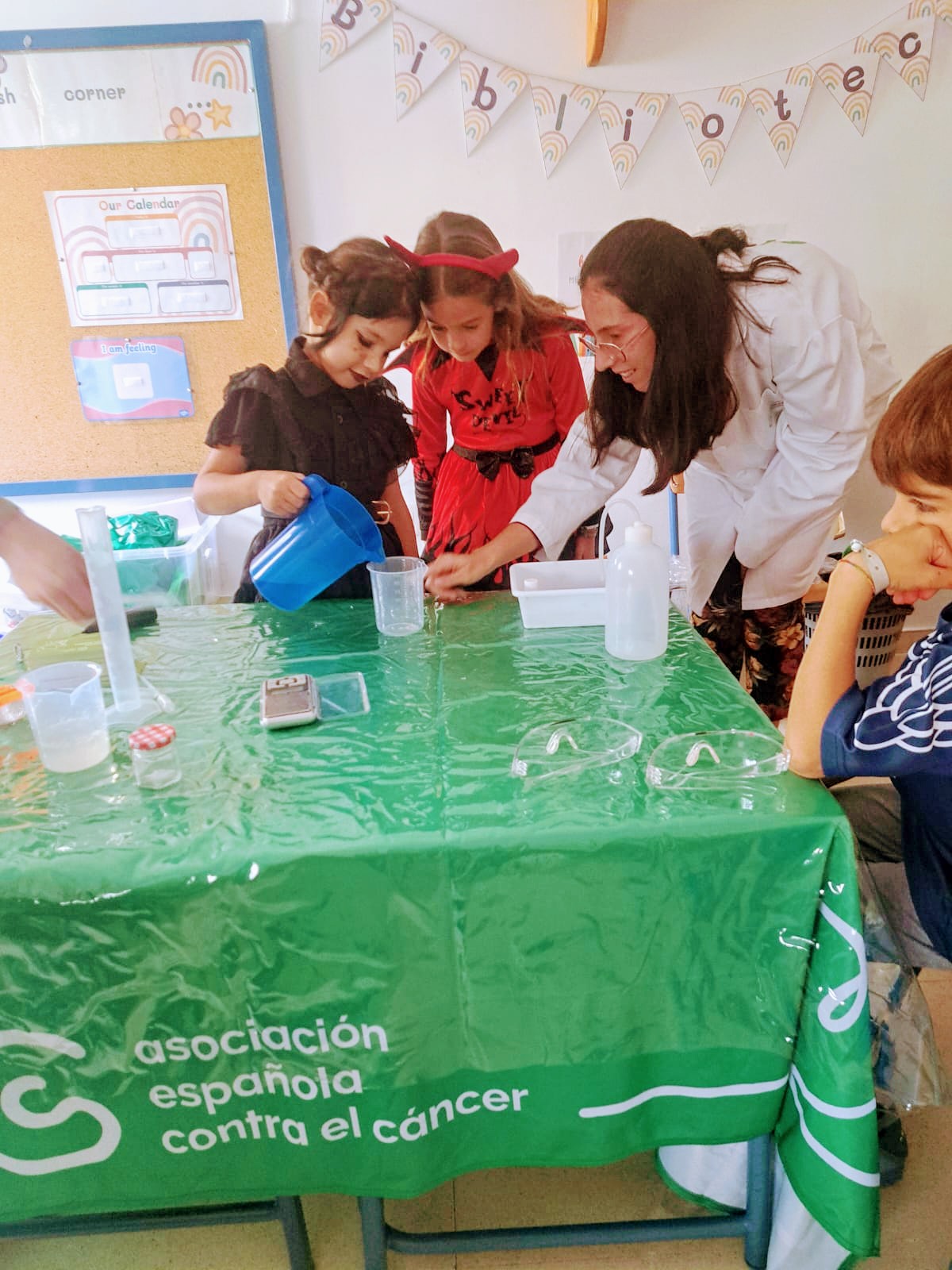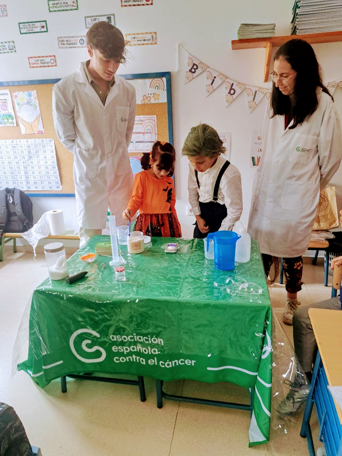 Los niños y niñas de 1º y 2º han recibido la visita de dos biólogos gracias a la Asociación Española contra el Cáncer. Con dicha actividad se pretende crear cultura científica entre la sociedad y despertar vocaciones por la ciencia entre los más jóvenes. ¡Han realizado numerosos experimentos!