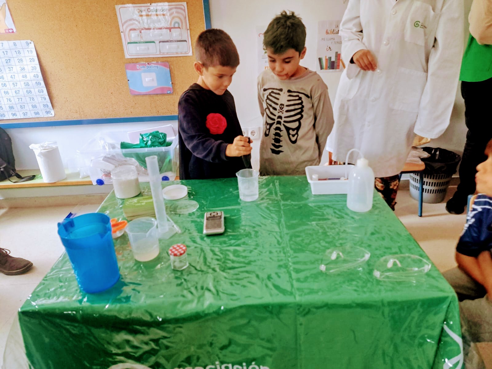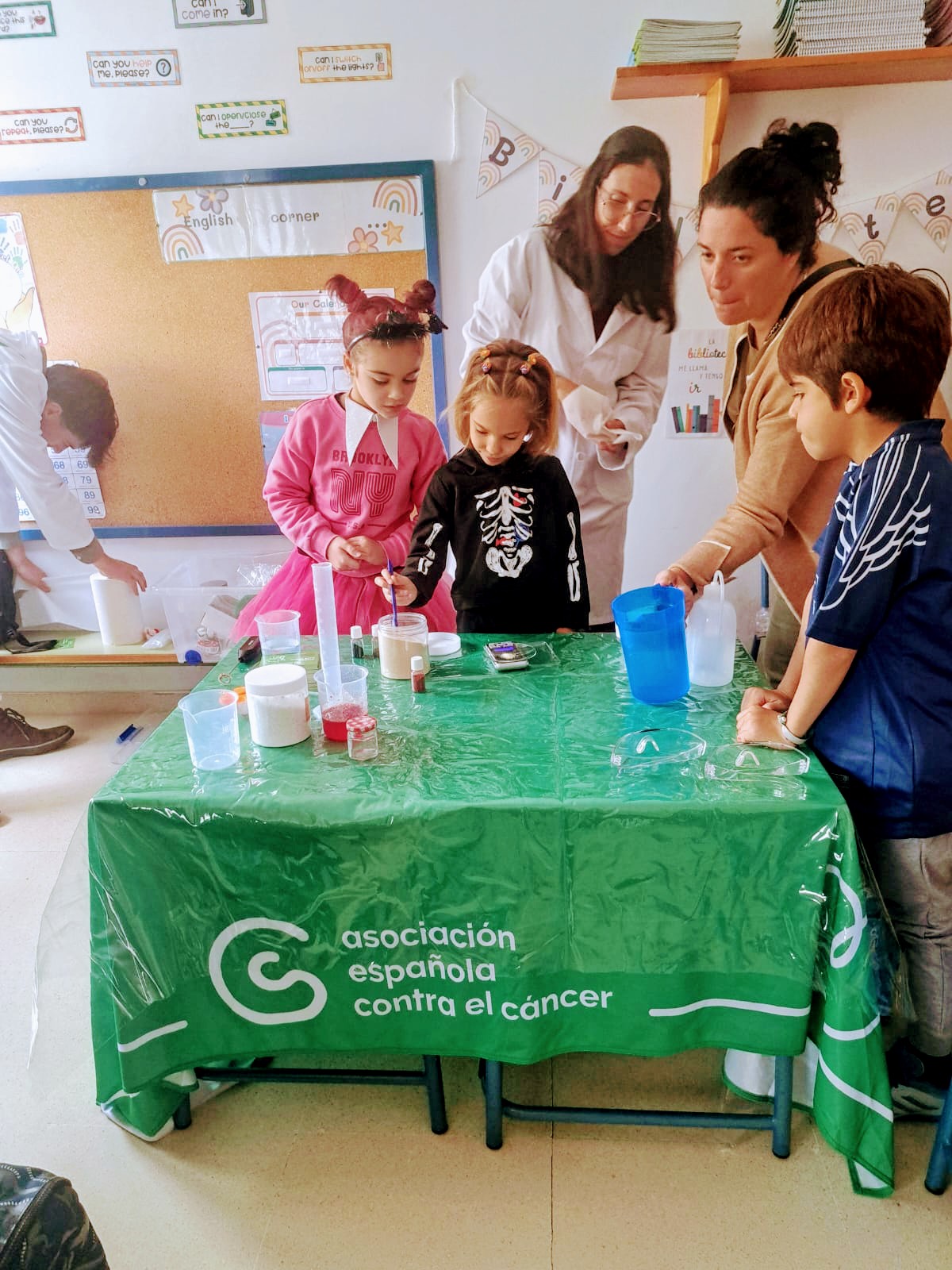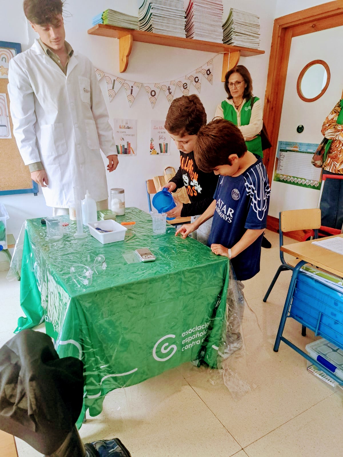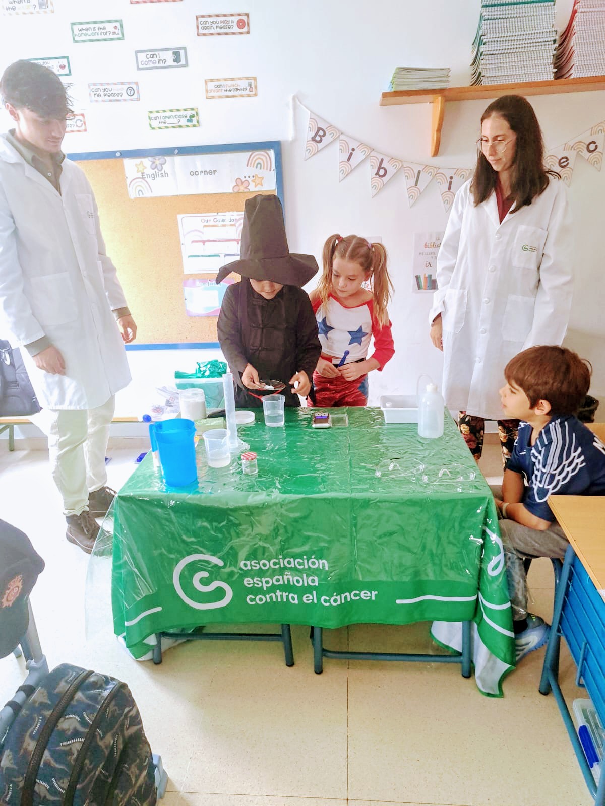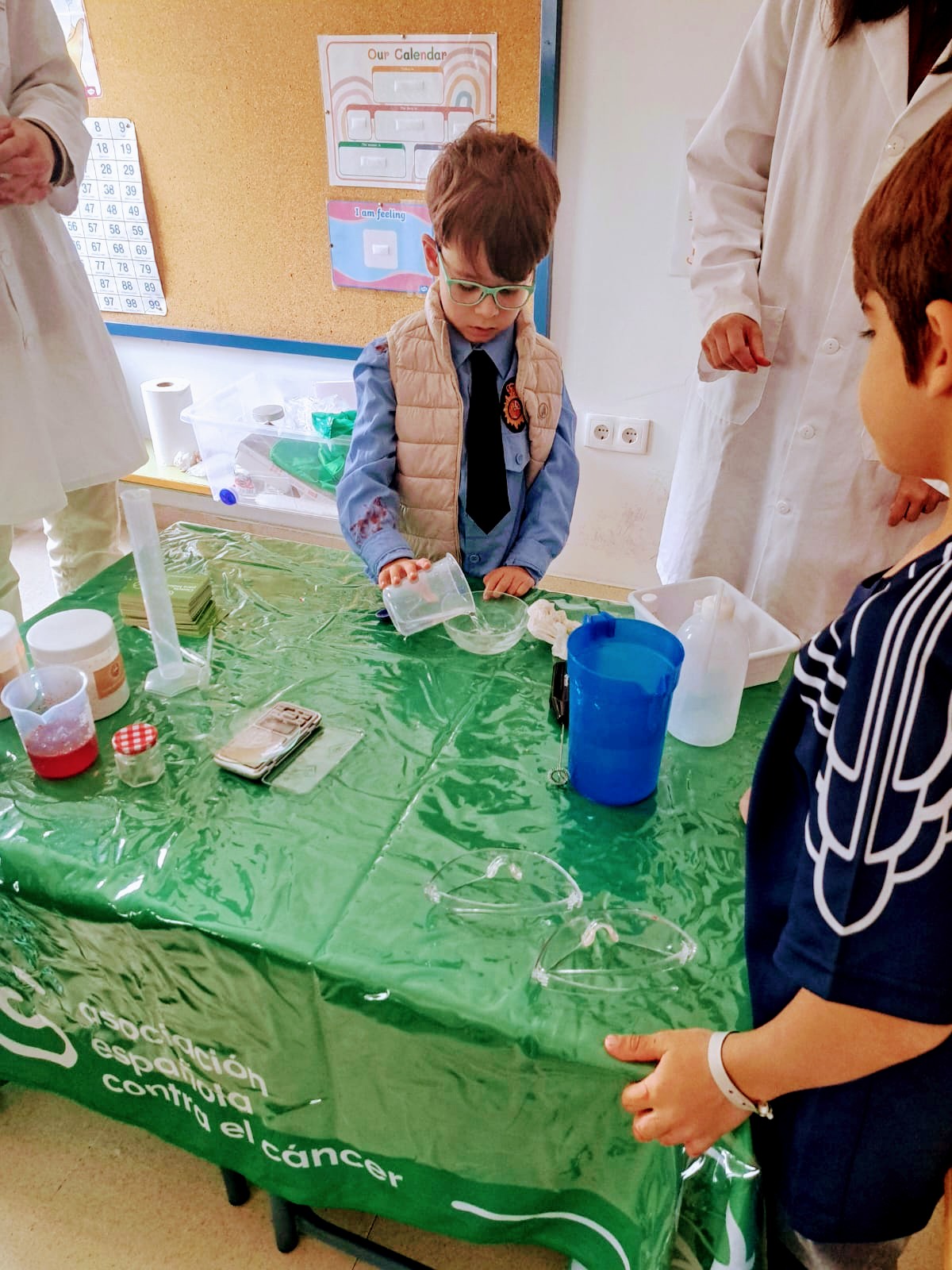 Los niños y niñas de 1º y 2º han recibido la visita de dos biólogos gracias a la Asociación Española contra el Cáncer. Con dicha actividad se pretende crear cultura científica entre la sociedad y despertar vocaciones por la ciencia entre los más jóvenes. ¡Han realizado numerosos experimentos!