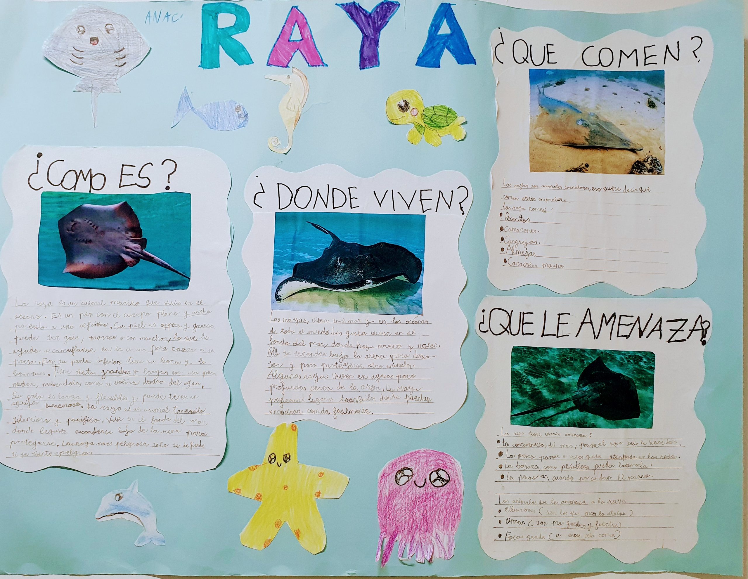Durante las últimas semanas, el aula de 2º curso se ha llenado de animales marinos , palabras nuevas